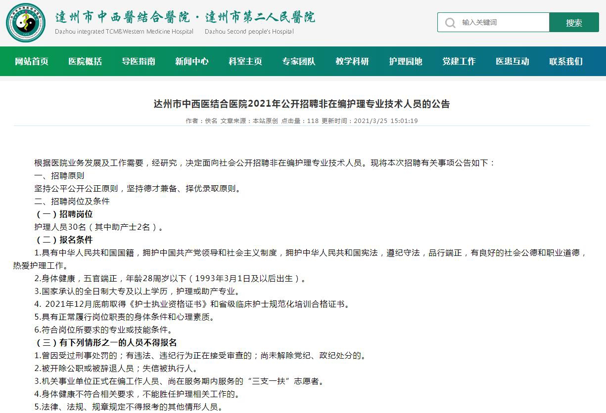 熱忱歡迎各路英才踴躍報(bào)名,達(dá)州市中西醫(yī)結(jié)合醫(yī)院期待與您攜手共進(jìn)。